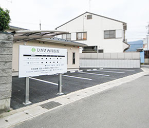 お車でも通院しやすいよう、広くて停めやすい専用駐車場を5台分ご用意しております。