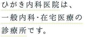 地域に暮らす皆さまの安心と健康を守る医療機関として、風邪、インフルエンザ、発熱、胃腸障害、頭痛などの急性疾患から、生活習慣病などの慢性疾患まで、内科全般に幅広く対応いたしております。